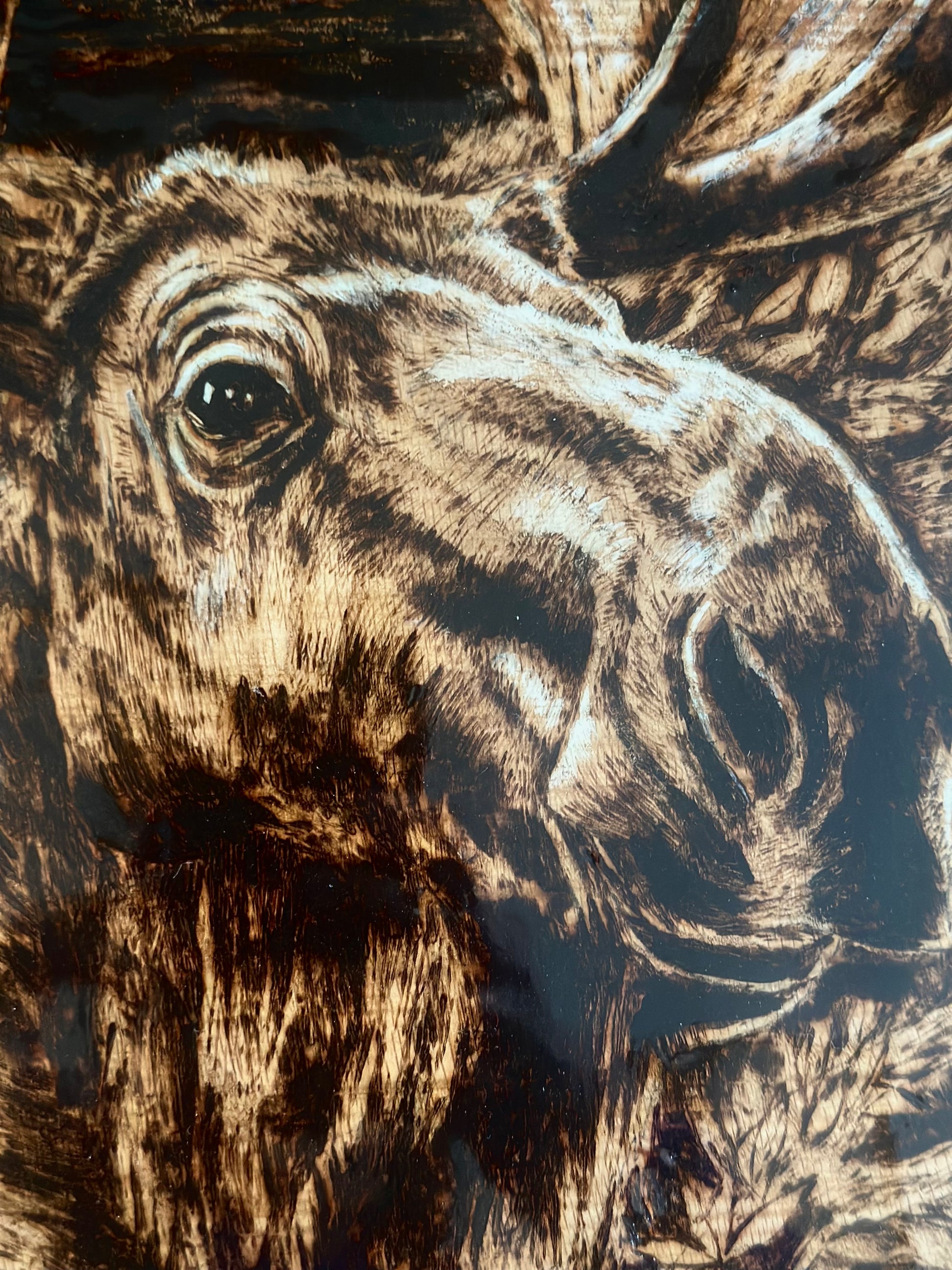 Perfect for collectors of rustic wall art, wildlife décor, or anyone who loves the untamed beauty of nature. Add a touch of the wild to your space with this timeless moose wood burning art — where craftsmanship meets the call of the forest.